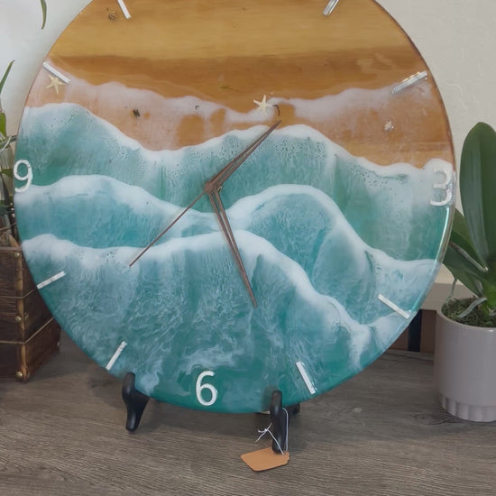 Bring the beach into your home with this handcrafted 18-inch ocean wave resin clock.
