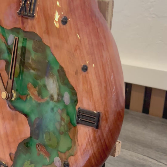 Handmade Koi Pond Resin & Wood Wall Clock – One of a Kind River Art Clock